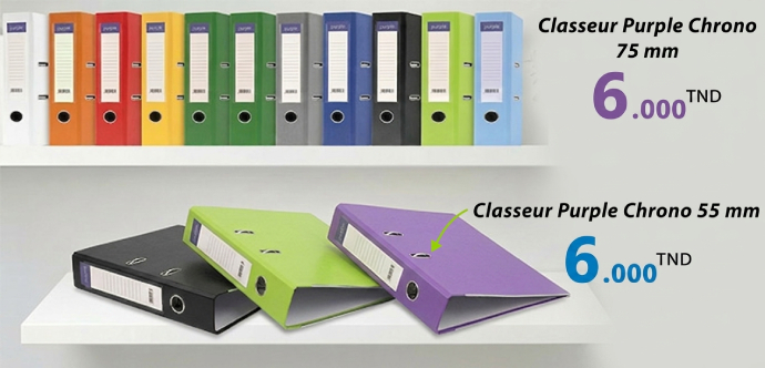 Classeur Chrono Grand modèle Standard Purple PLASTIPAP à 2 anneaux Grand Modèle