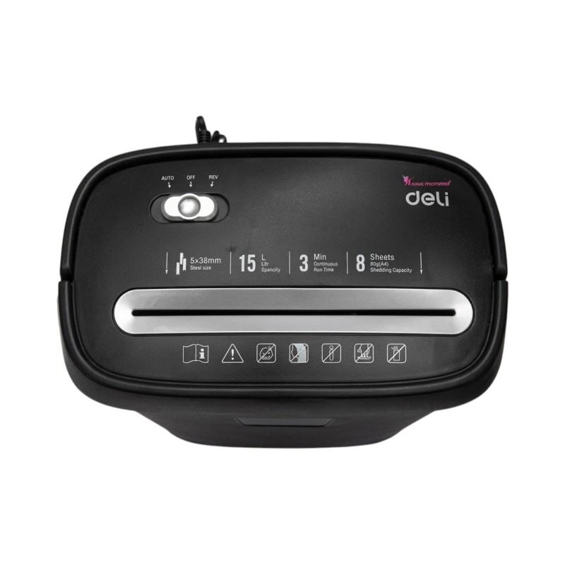 Destructeur de Papier A4 Deli E9947 8 Feuilles - 15 Litres